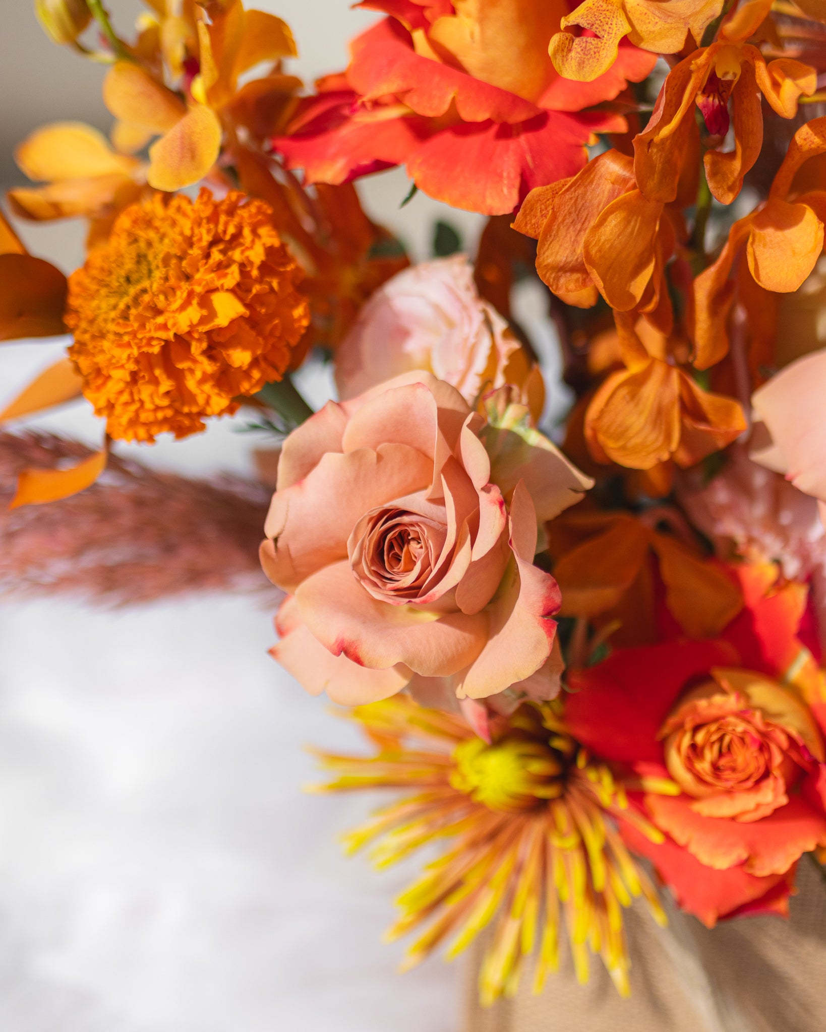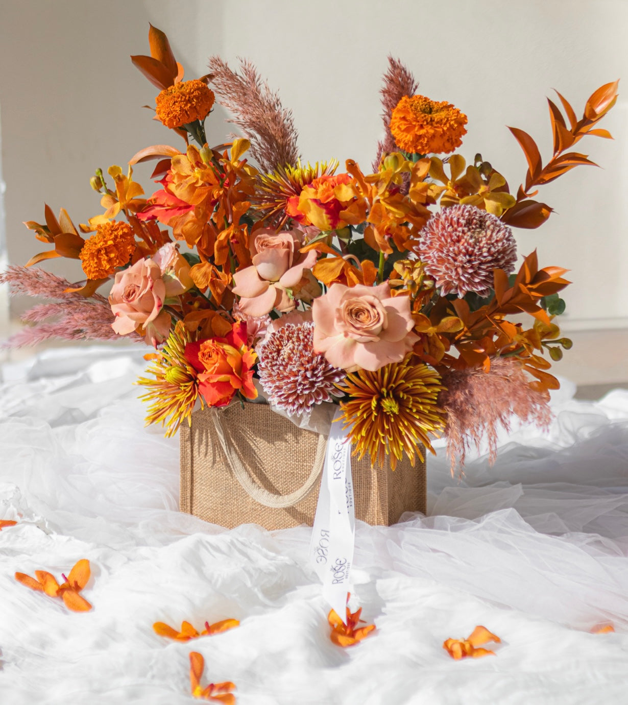 A radiant mix of amber, terracotta, and blush tones inspired by the warmth of the golden hour. This arrangement captures the cozy elegance of autumn light — where every petal glows softly under the sun. Perfect for adding a touch of warmth and sophistication to any space.