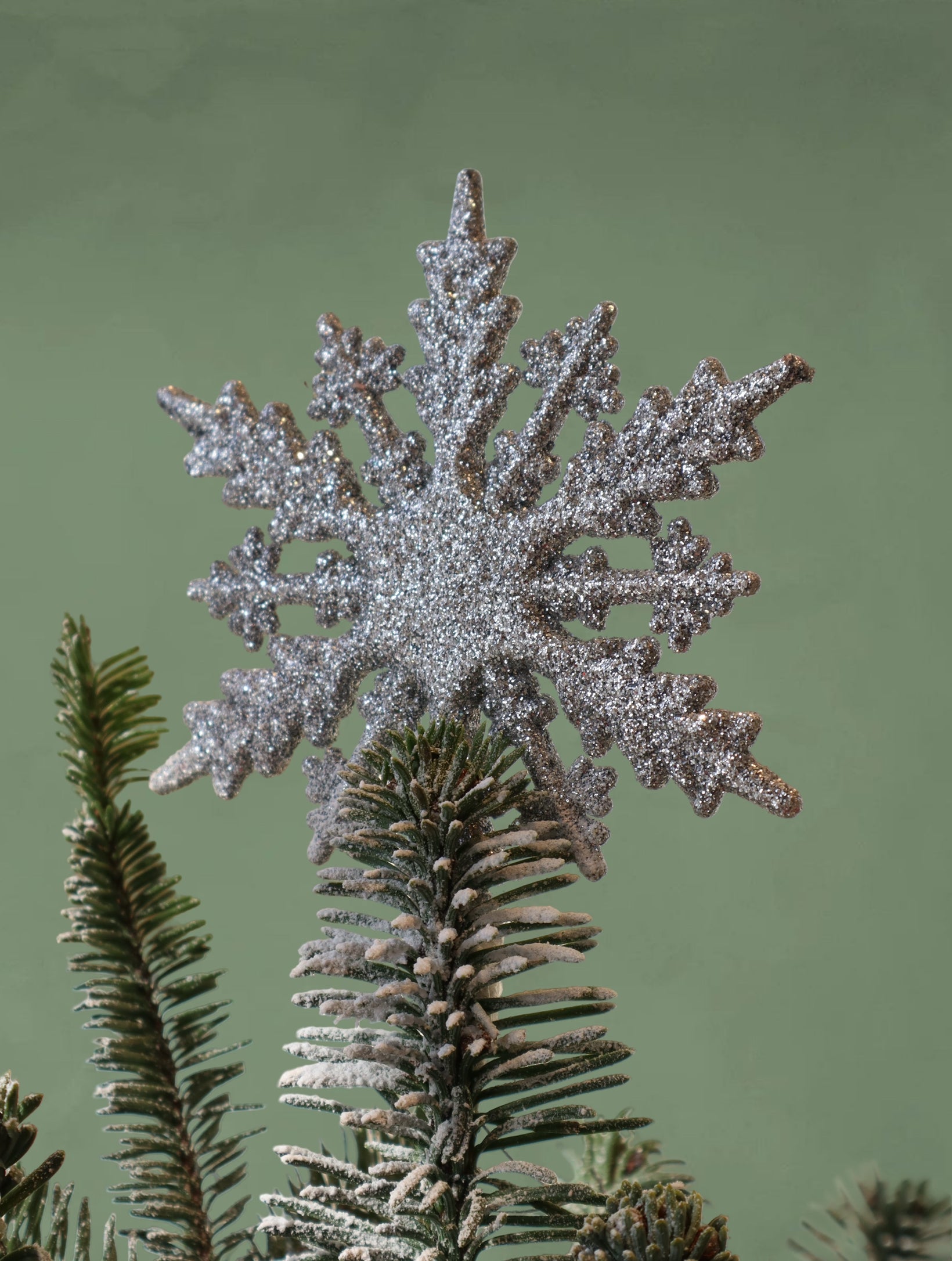 Inspired by the magic of decorating a Christmas tree, this arrangement brings together frosted greens, red berries, pinecones, candy canes, and holiday ornaments, crowned with a glittering snowflake. Whimsical details add warmth and personality, making it a charming centerpiece for the festive season.