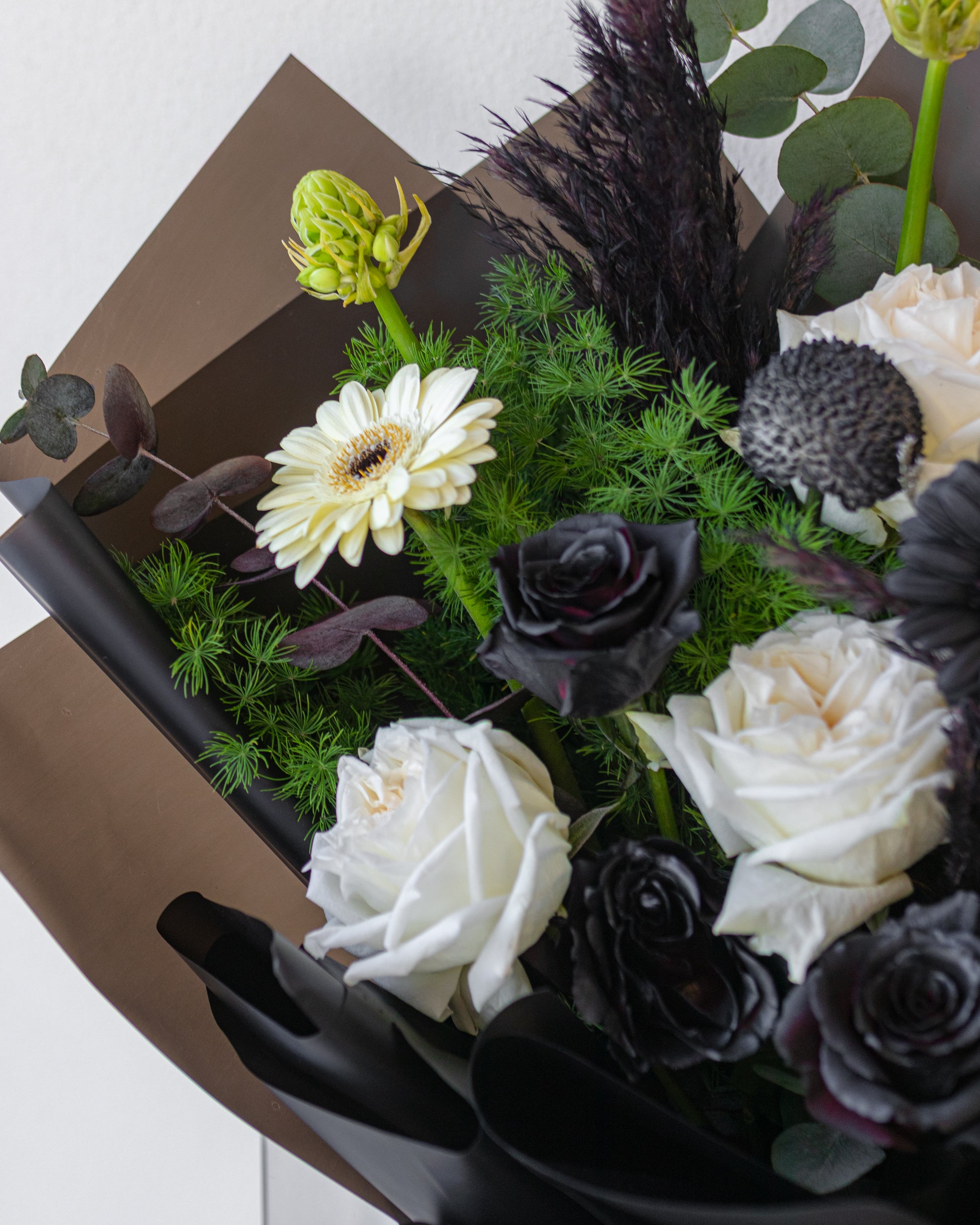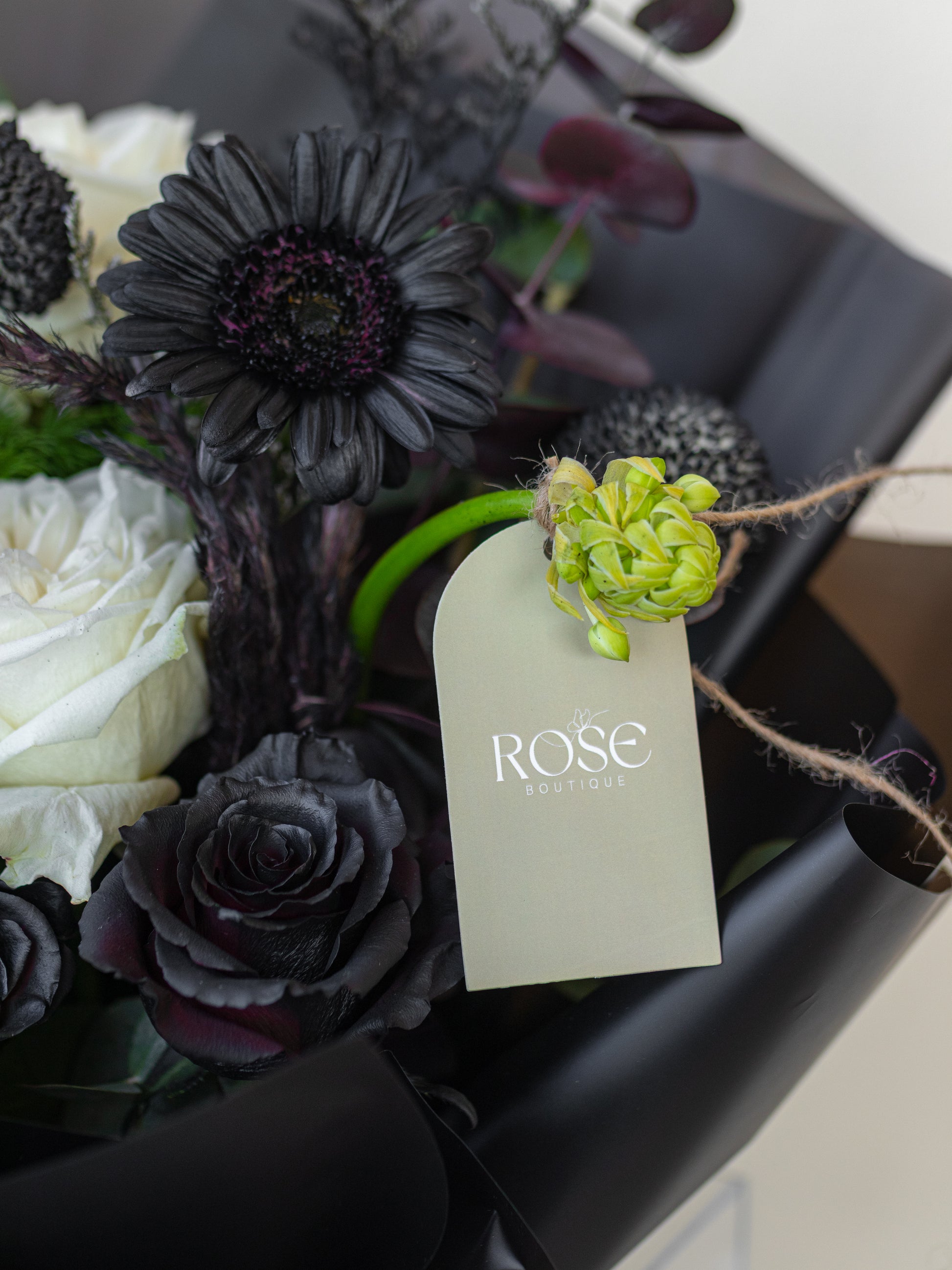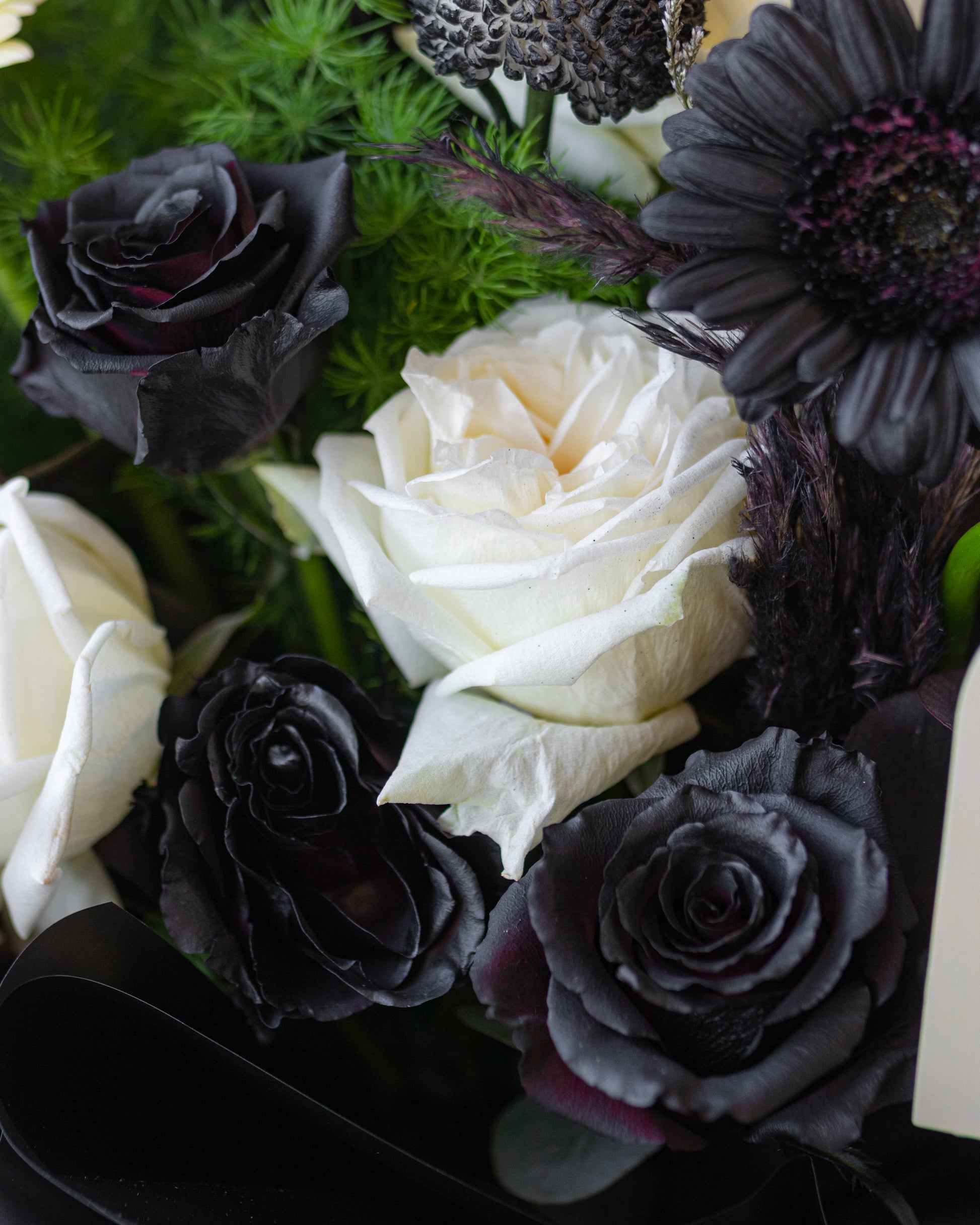 A poetic contrast of black and white blooms, where mystery meets grace. A statement bouquet that embodies balance, depth, and quiet sophistication.